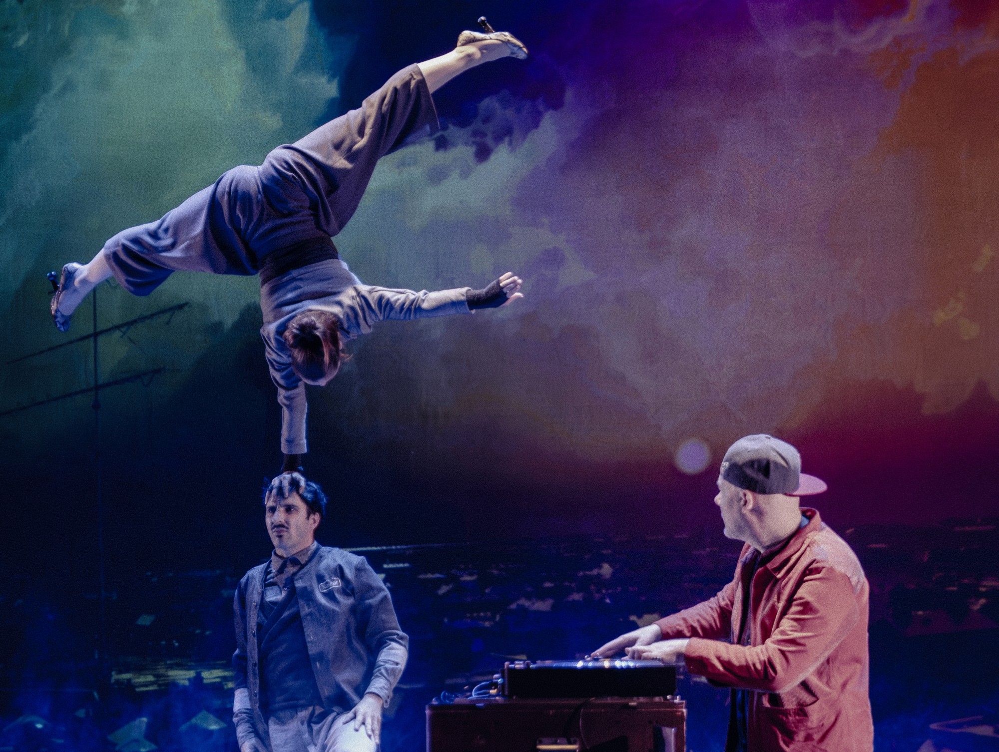 Porté par la musique live de Supa Jay (Scratch Bandits Crew) et des projections vidéo spectaculaires, Sans regrets transforme la scène en terrain de jeu total. Un ciné-cirque-concert haletant, entre chaos et poésie.